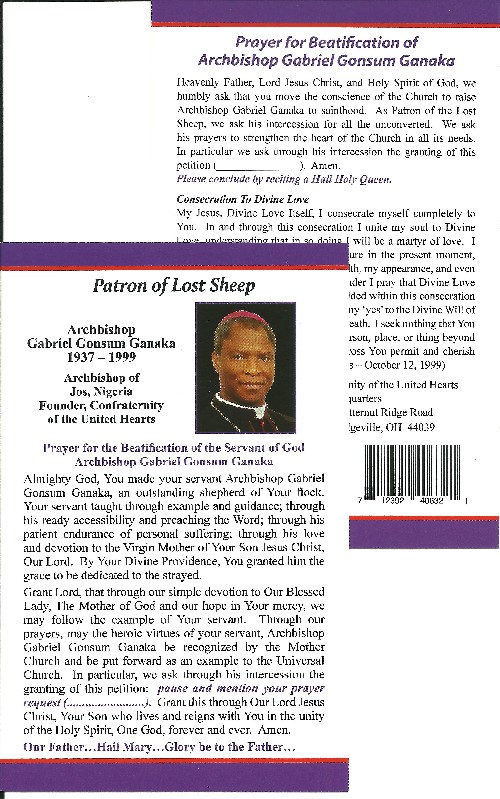 Prayer Card: Prayers for the Beatification of Archbishop Gabriel Ganaka (ENGLISH)